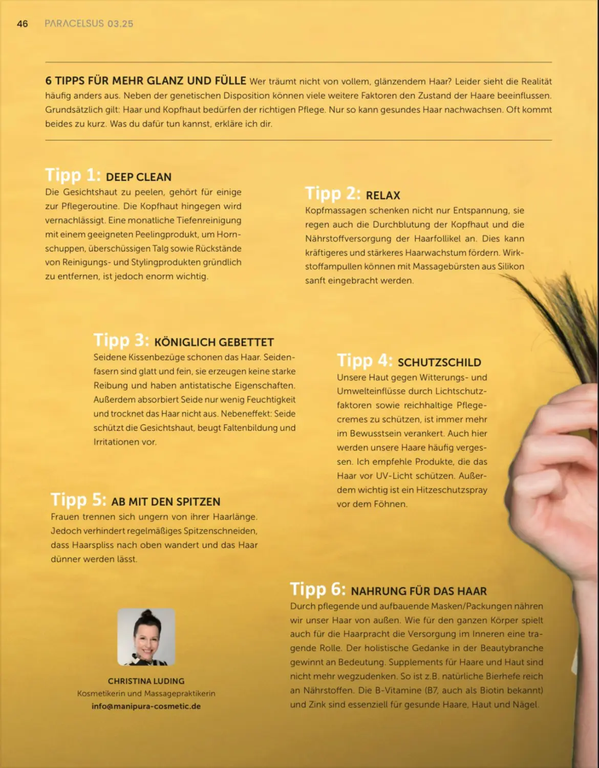 Lies gerne meine Artikel aus der Reihe ‚Ich bin Beauty!‘, die ich als Kolumnistin für das Paracelsus Magazin für Gesundheit schreibe.